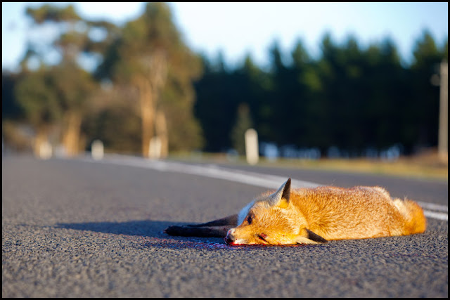 Perfect roadkill shot only moments after this fox had been hit. (6.15am) |